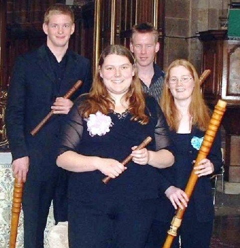 Pat Mahon passed TCL Grades 6 & 7, before continuing her studies at Trinity College, London. She now specialises in Early Music, and is a fine recorder player and accomplished singer. The picture shows Pat [centre], with members of her former ensemble, Mean Time.